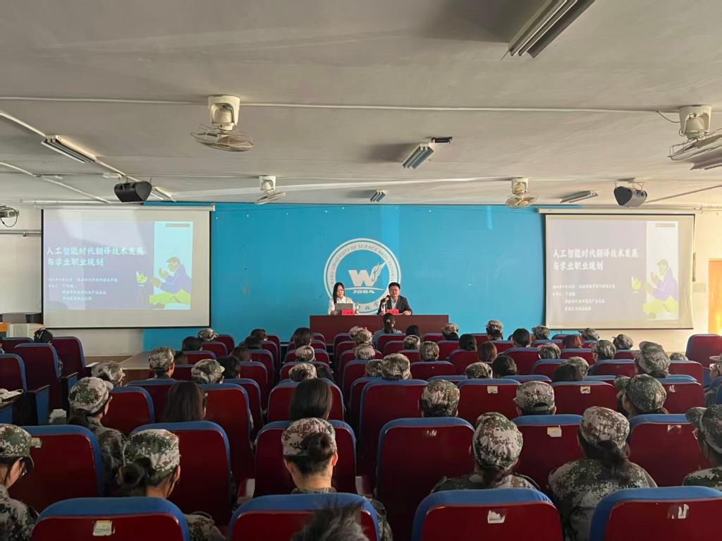 9月24日下午,译国译民集团山东分公司高校部总监陈淑玲一行受邀来到外国语学院,开展以“人工智能时代翻译技术发展与学业职业规划”为主题的分享交流活动,外国语学院党总支书记张丽、院系干部及130多名学生参加了本次活动。