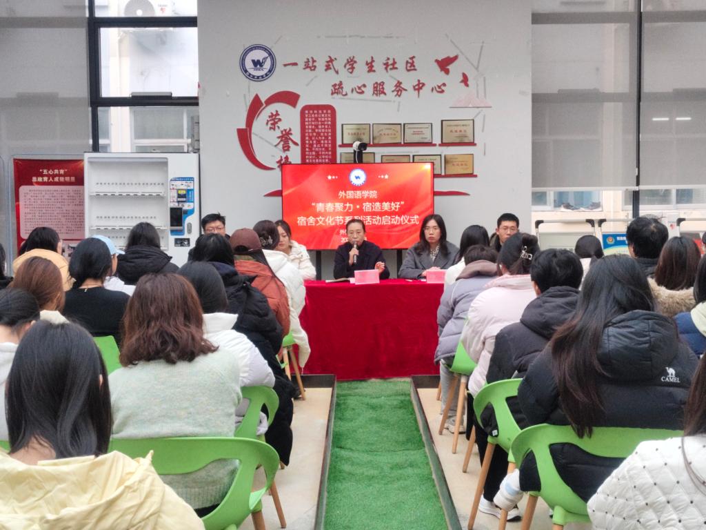 为进一步营造安全稳定、整洁有序、和谐友爱的宿舍环境,12月9日,外国语学院在1号楼学生公寓客厅举办“青春聚力・宿造美好”宿舍文化节系列活动启动仪式暨师生面对面交流活动。外国语学院党总支书记张丽、副书记郝磊、教学副院长卢恩波、学生科长郑永超、全体辅导员及40余名学生代表参加,并特邀公寓管理中心国敬科长出席。