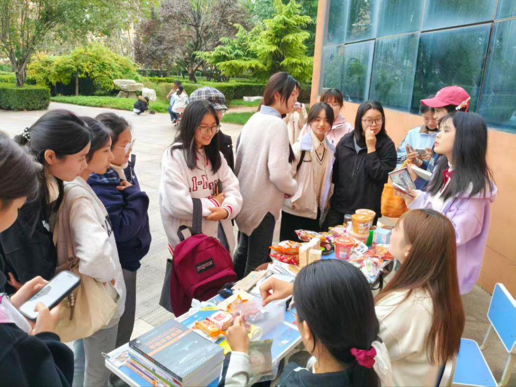 为促进校园资源循环、增进同学情谊并践行绿色理念,10月30日,外国语学院健康心理志愿者服务队在教学楼前举办了“闲物传情,校园拾光”主题活动。