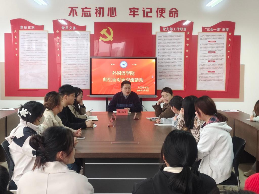 为精准把握学生需求,切实解决学生在学习与生活中遇到的实际困难,4月8日,外国语学院在301会议室举办“师生面对面”交流活动。学生科科长郑永超,辅导员王天新、孙凯丽、赵希凤及20余名学生代表共同参与。
