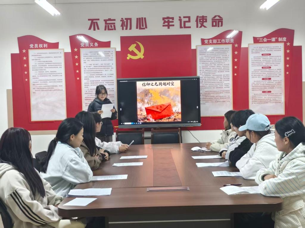 学院以多形式创新党建载体。专题辩论赛围绕“新时代长征,‘坚持’与‘创新’哪个更重要”展开,辩手们逻辑清晰、论据有力,让“新时代长征需坚持初心、创新路径”的认知深入人心;红色家书双语诵读活动,党员与入党积极分子将经典场景改编为中英双语内容,搭建红色情感共鸣通道;“跨时空对话”双语书信漂流活动,学生们结合专业表达使命,探索用外语讲好中国红色故事。
